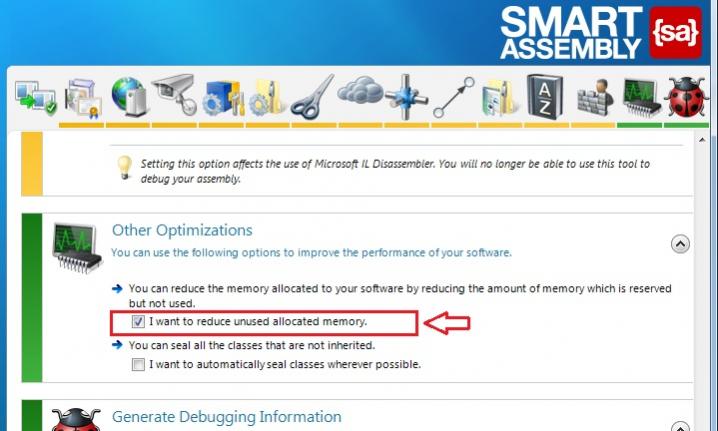 گزینه ی "reduce unused allocated memory" در SmartAssembly چه کاری انجام می دهد؟