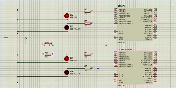 مدار با دو تا مگا8 هست که فقط با فشردن باتن باید ال ای دی 2 هم خاموش بشه و این با کد کدویژن انجام میشه و با اتمل انجام نمی شود.