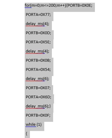 for(m=0;m<=200;m++){PORTB=0X0E;